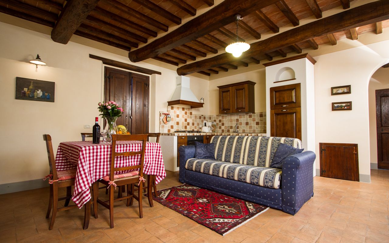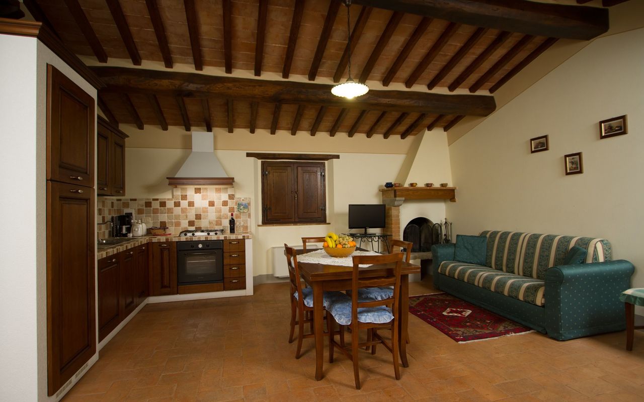Vacanta in Toscana Agriturismo Il Sambuco Appartamento Iris Appartamento Iris (80mp, 4 + 2 persoane) localizat la primul etaj, accesibil pe o scara exterioara frumoasa de piatra. Apartamentul este format dintr-un living room cu o canapea dubla extensibila, masa si semineu si o bucatarie complet echipata cu frigider, congelator, masina de spalat vase, cuptor, filtru